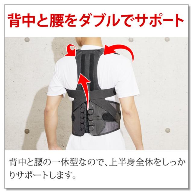 背中と腰の一体型なので、上半身全体をしっかりサポートします。