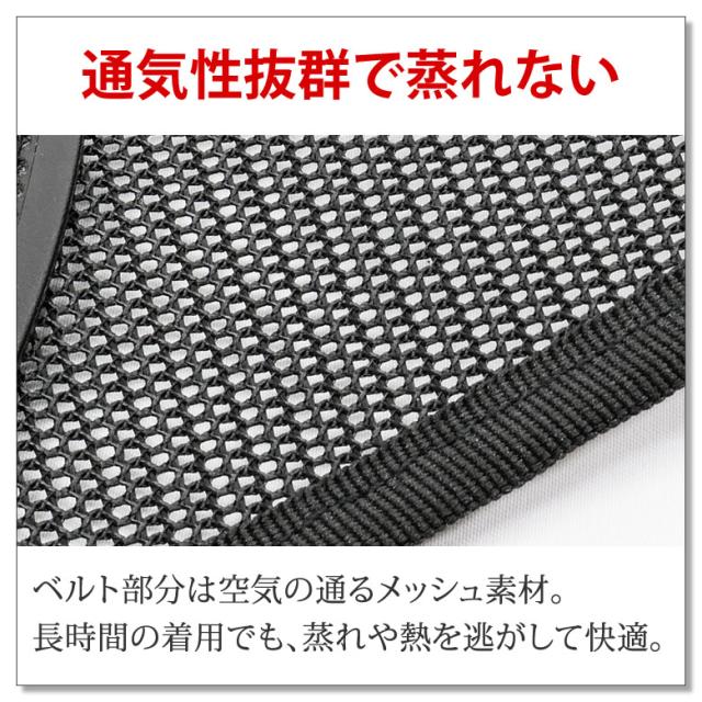 腰の部分は通気性抜群のメッシュ素材で、熱や湿気がこもりにくく長時間の使用も快適です。