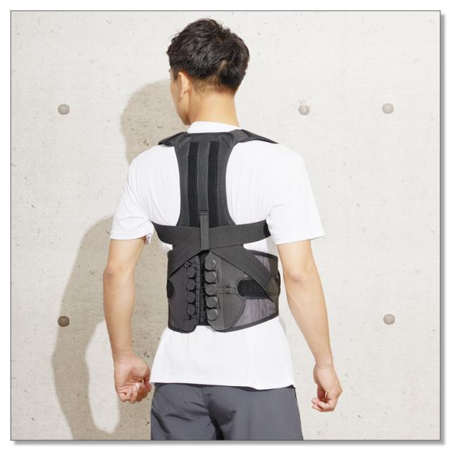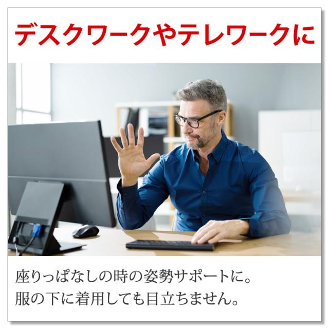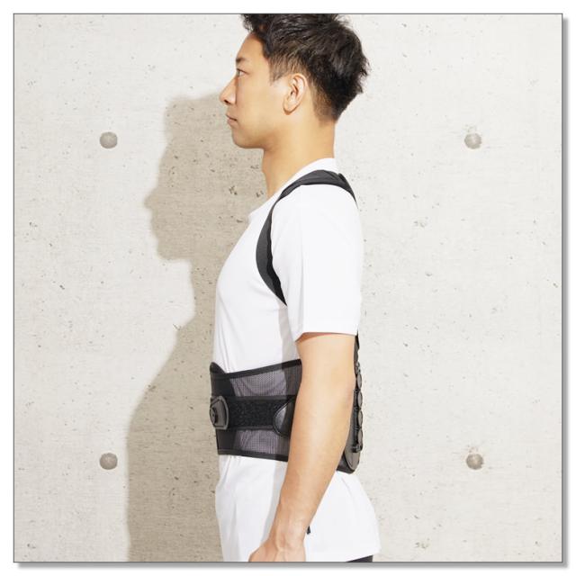 着用中は、肩甲骨を引き寄せて腰を立てて、正しい姿勢に補正します。