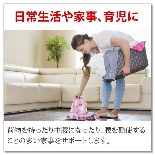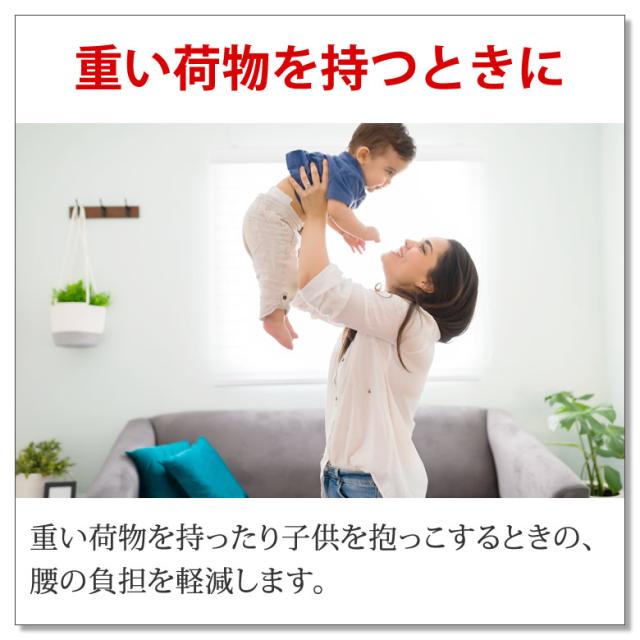 重い荷物を持ったり子供を抱っこするときの、腰の負担を軽減します。
