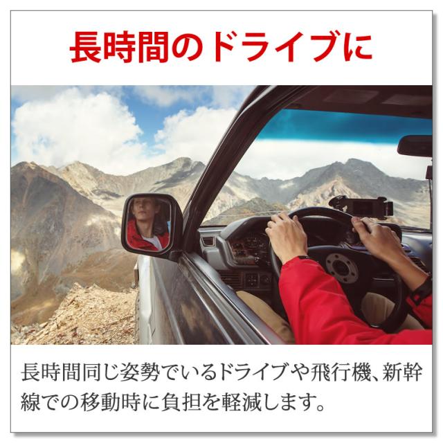 長時間同じ姿勢でいるドライブや飛行機、新幹線での移動時に負担を軽減します。