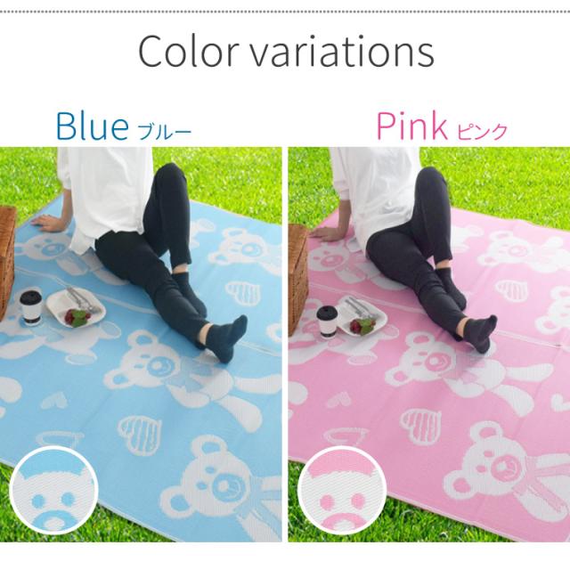 ラグ ラグマット 2畳 レジャー シート マット 約176×176cm 水洗いOK ござ 洗える クマ くま かわいい 可愛い ウォッシャブル PPカーペット PPラグ 正方形 軽量 アウトドア 上敷き 行楽 お花見 海水浴 運動会 ピクニック 日本製