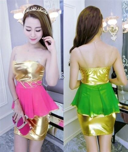 ミニドレス キャバドレス キャバワンピ 煌めくメタリックカラー装にエレガントなフロントぺプラムフリルデザイン ミニドレス
