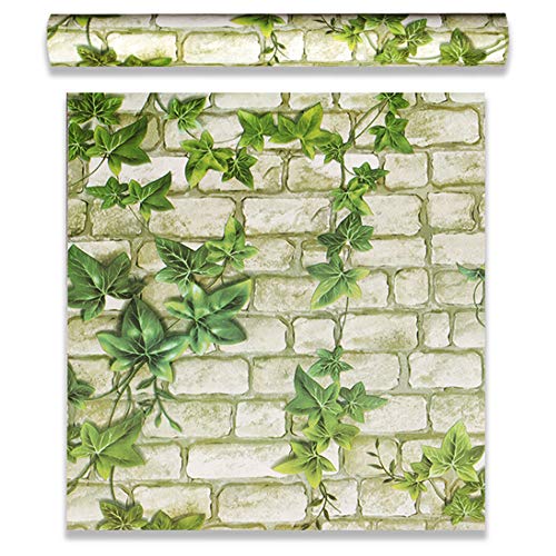 壁紙シール ウォールステッカー レンガ柄 はがせるタイプ 45cm×10m リフォーム ウォールステッカー 防水 (緑の葉の壁紙)