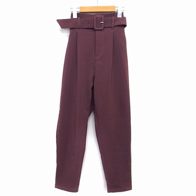 【中古】グレイル GRL 国内正規品 テーパード パンツ 無地 シンプル フリル タック ベルト S ブラウン 茶 /HT21