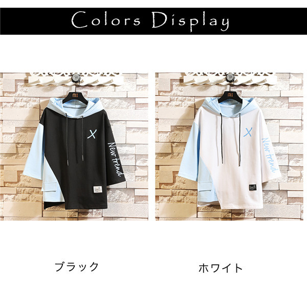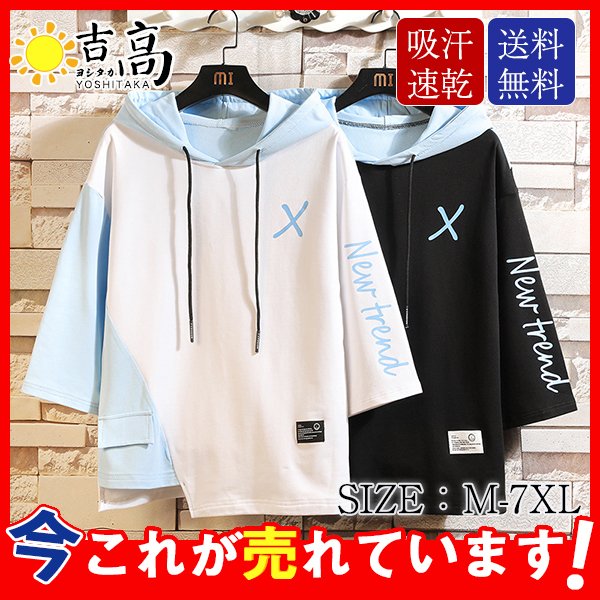 パーカー メンズ Tシャツ 夏服 七分袖 半袖 Tシャツ フード付き カジュアル プルオーバー シャツ 春夏 ゆったり おしゃれ 大きいサイズ