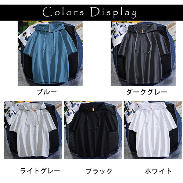 夏服パーカー メンズ tシャツ 半袖 プルオーバー フード付 スウェットシャツ 綿 無地 カジュアル スポーツ 半袖パーカー 通学 運動会 体育祭