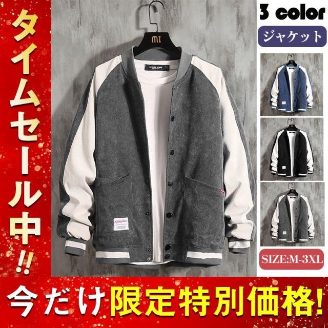 スタジャン メンズ スカジャン ブルゾン ジャージ 長袖 バイカラー カジュアル おしゃれ スポーティ 春秋 スタジアムジャケット アウター 野球服