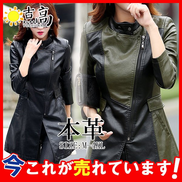 レザージャケット レディース ライダースジャケット シープスキン 着痩せ 本革 レザーコート ラム革 ロングコート トレンチコート バイクジャケット
