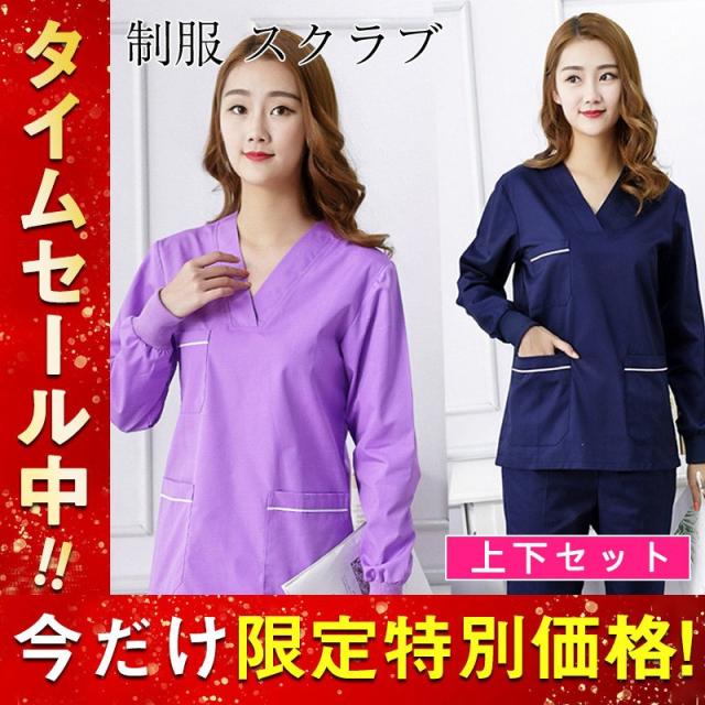 スクラブ 白衣 レディース セットアップ ユニセックス ナースウェア 半袖 長袖 ドクター 歯医者 医務衣 看護 制服 おしゃれ