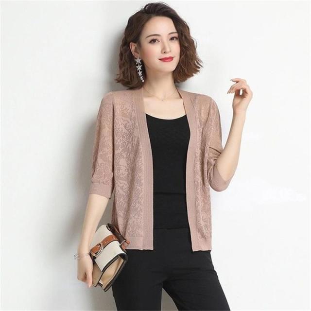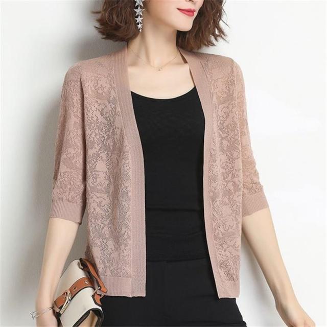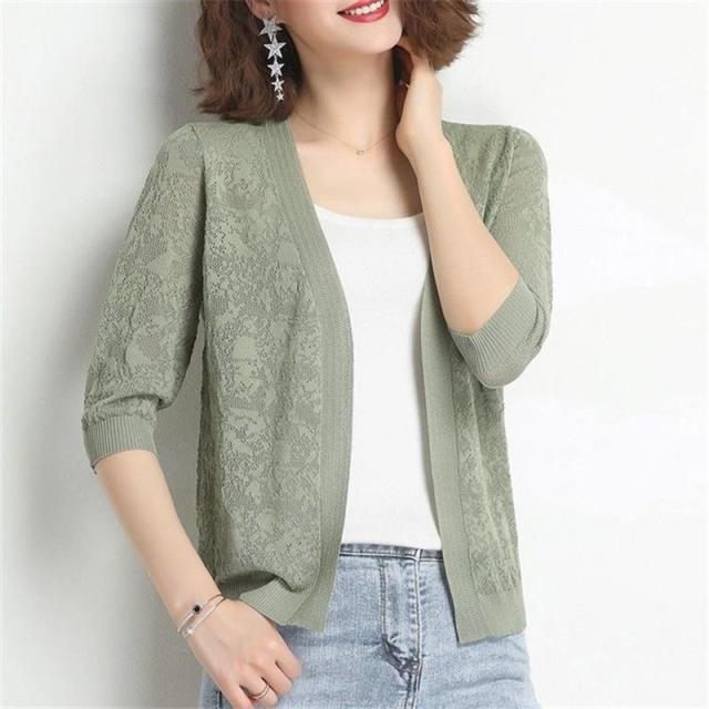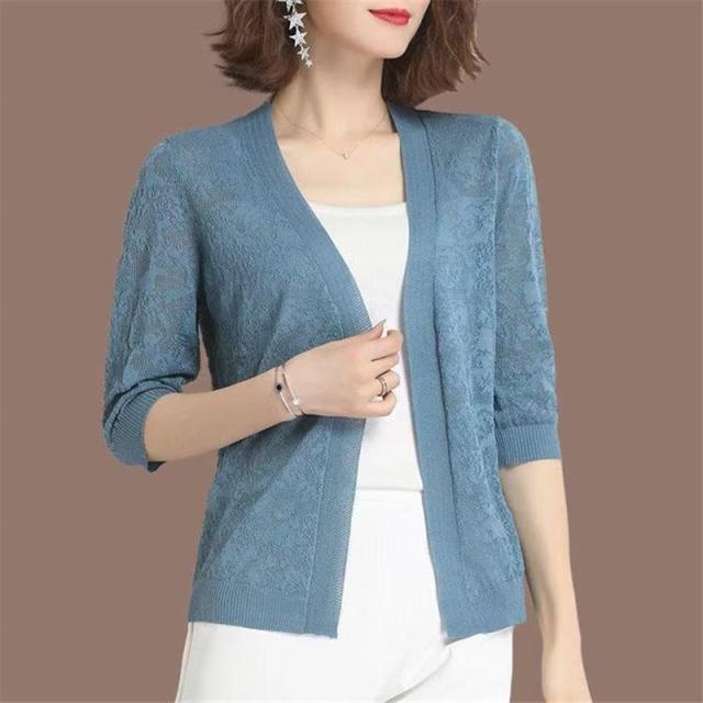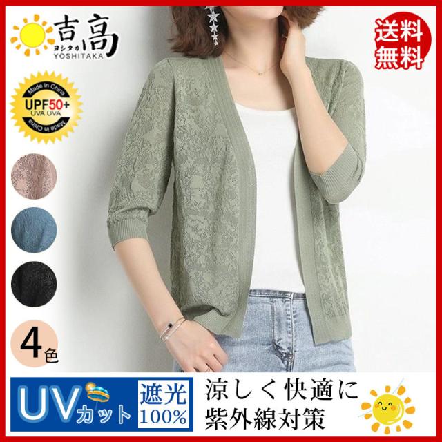 カーディガン レディース 接触冷感 長袖 UVカット 紫外線対策 透かし彫り Vネック 無地 ゆったり フェミニン 体型カバー 薄手 ギフト 母の日