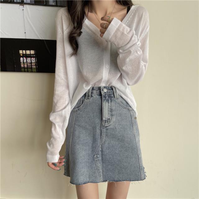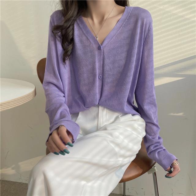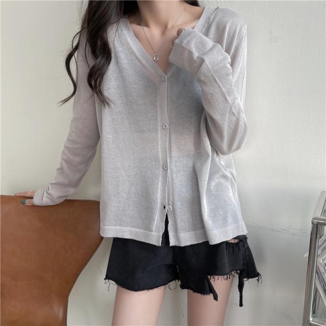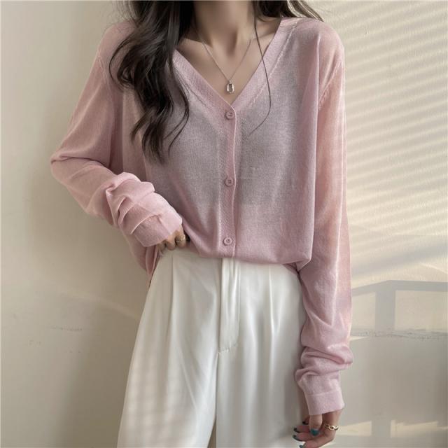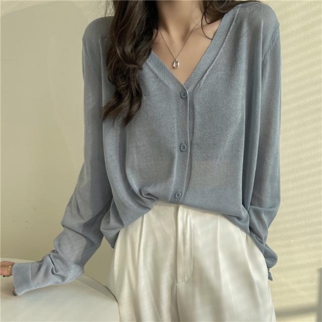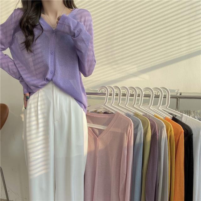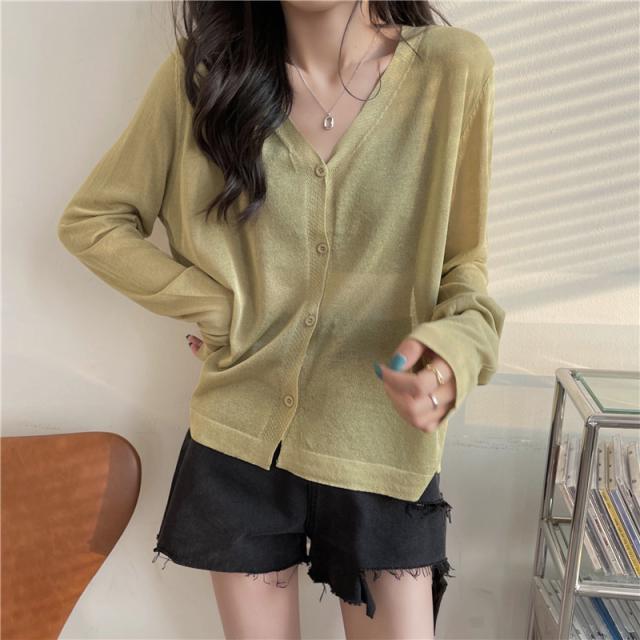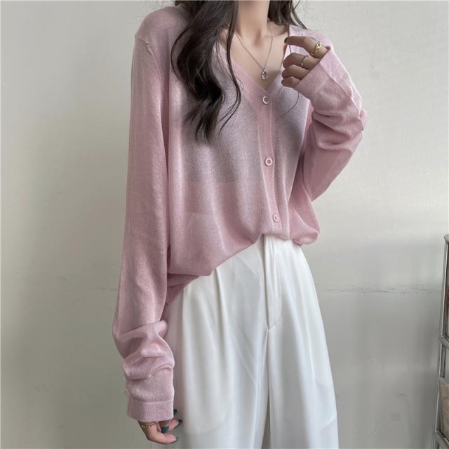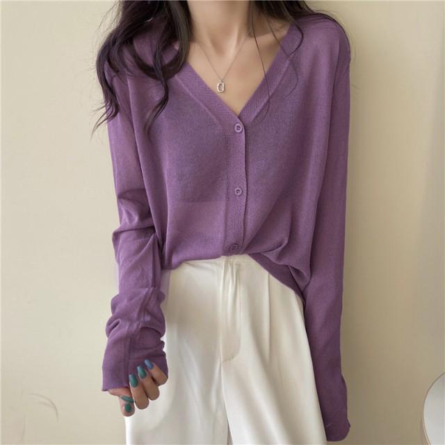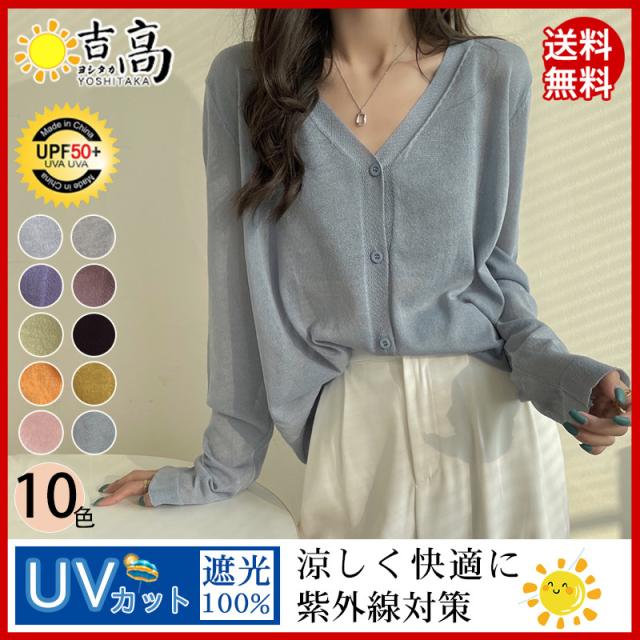 新作 カーディガン レディース 冷感素材 長袖 UVカット ニット 紫外線対策 Vネック 無地 ゆったり フェミニン 冷房対策 体型カバー 羽織 薄手