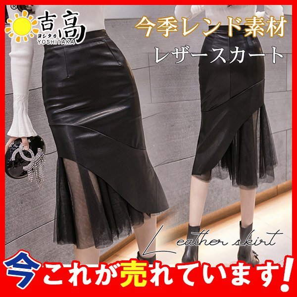 レザースカート レディース ロング ミディアム丈 マーメイド レース 膝丈 秋 冬 PU ハイウエスト タイトスカート フェイクレザー 革スカート