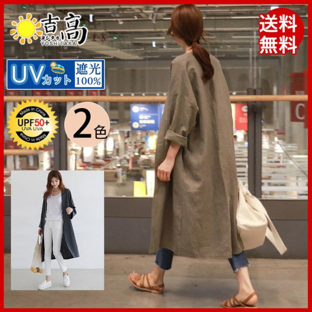 カーディガン ロングコート レディース UVカット ロング丈 冷房対策 UVカット 紫外線対策 綿麻混 羽織り 体型カバー ゆったり アウトドア