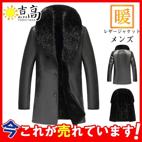 レザージャケット メンズ 革コート 革ジャン ファー付き コーデ PU革 裏ボア 裏起毛 ライダースジャケット 開襟 冬 保温 体型カバー 秋冬