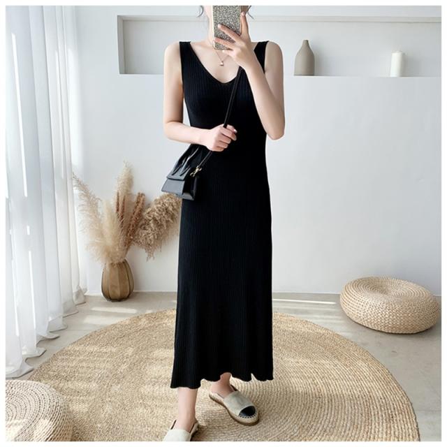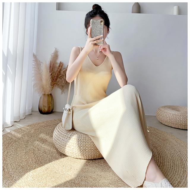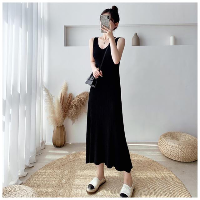 ジャンパースカート ワンピース レディース ノースリーブ 冷感素材 ニット ロング 着痩せ 通気性 体型カバー 薄手 カジュアル ゆったり 通勤 夏