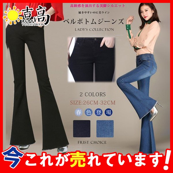 デニムパンツ ブーツカット フレア 美脚メイク ロング丈 ストレッチ レディース ハイウェスト ファッション コーデ 大きいサイズ ボトムス 小尻