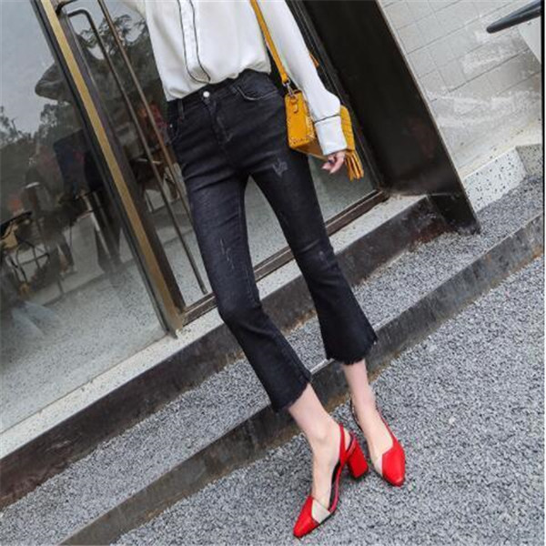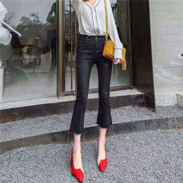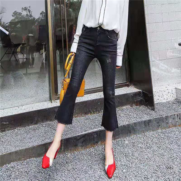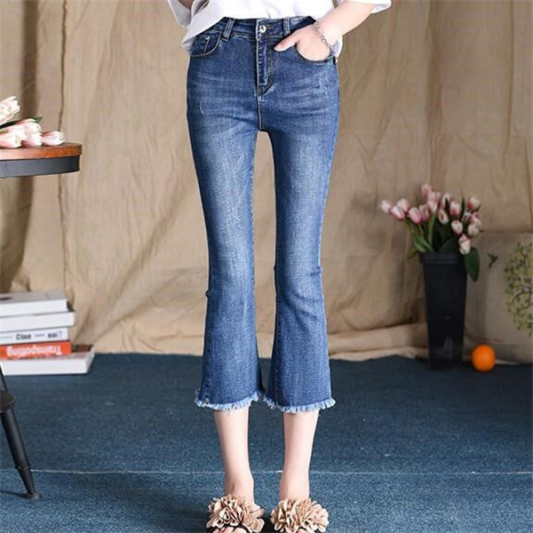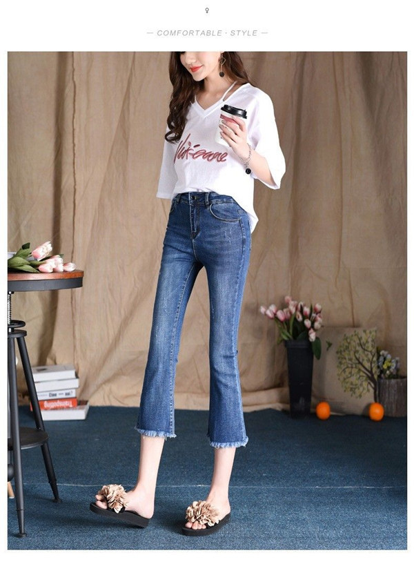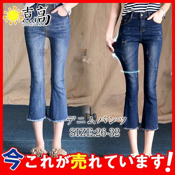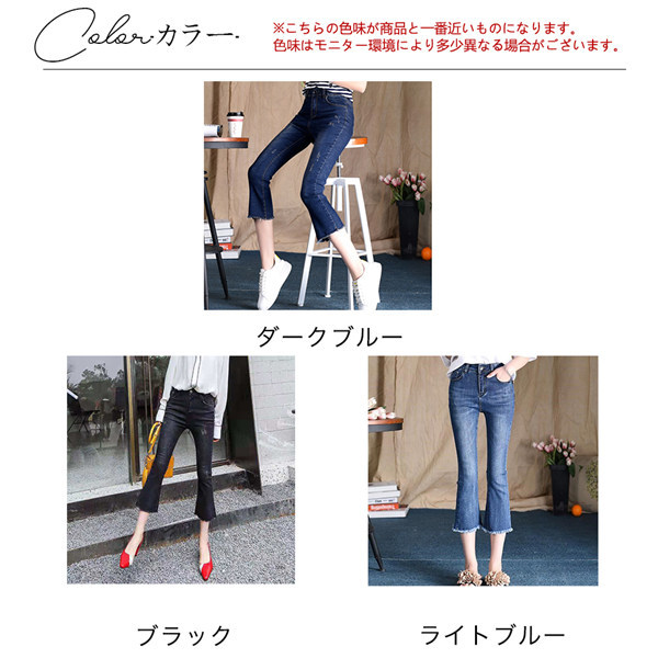 フレア デニム レディース Aライン ブーツカット 裾フリンジ スキニーデニム 7分丈 ストレッチ ハイウェスト ロング丈 ロングパンツ 美脚 春服
