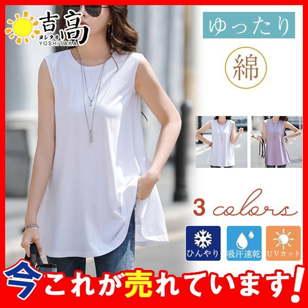 ノースリーブ タンクトップ ロング丈 レディース フレア コットン 無地 インナー Aライン 大きい ゆったり 薄手 シンプル きれいめ ベーシック