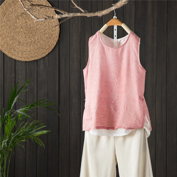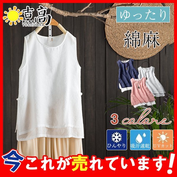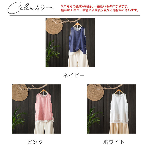 タンクトップ レディース リネン 綿麻 ノースリーブ インナー 下着 重ね着 ベーシック 無地 薄手 カジュアル きれいめ シンプル スタンダード