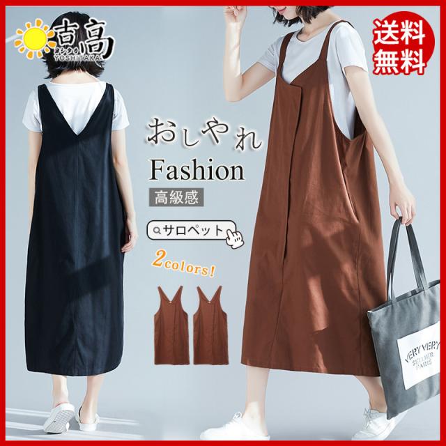 サロペット レディース ワンピース ジャンパースカート フレア ゆったり 大きいサイズ シンプル カジュアル 体型カバー 着痩せ 通勤 おしゃれ 日常