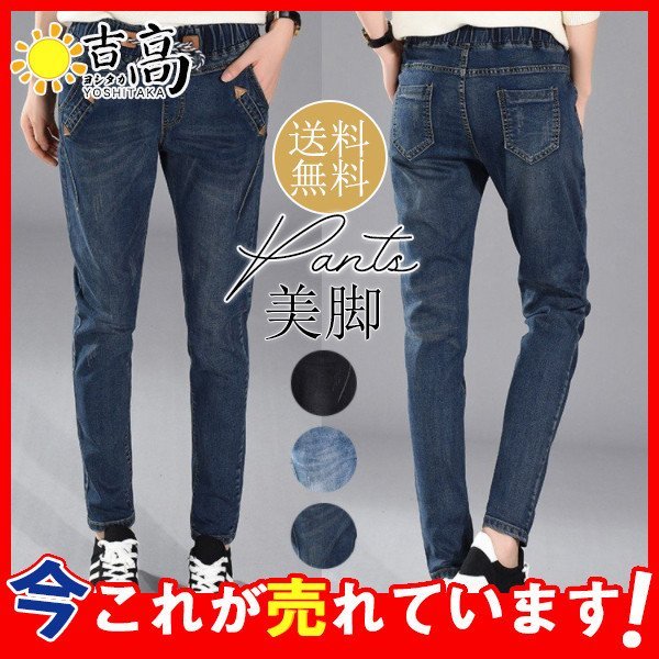 送料無料 デニム レディース パンツ ストレッチ ウエストゴム ウエストリブ 美脚 スキニー ジーンズ スキニーパンツ ウルトラストレッチ感