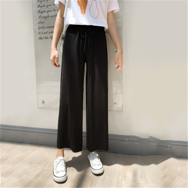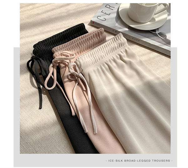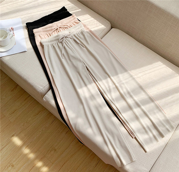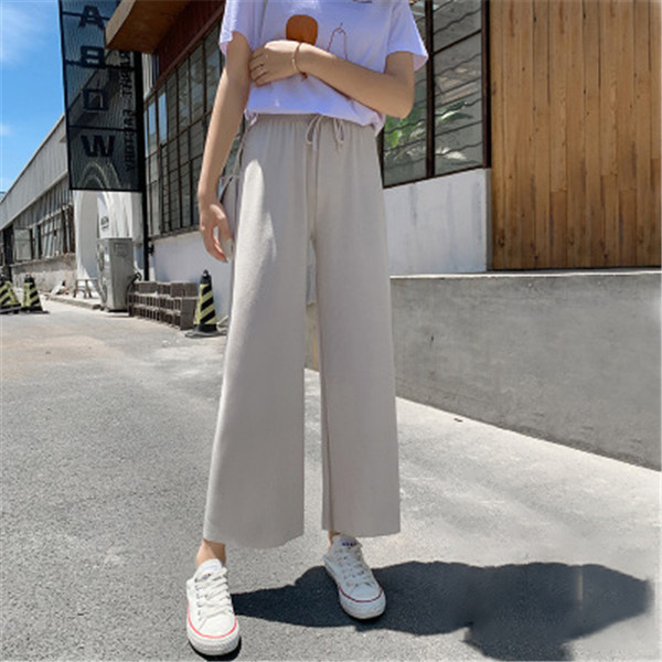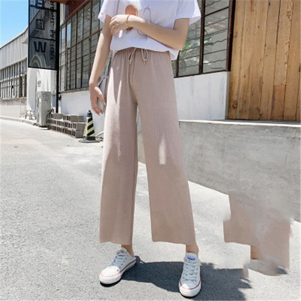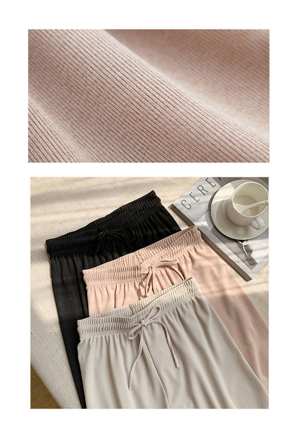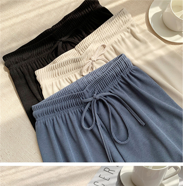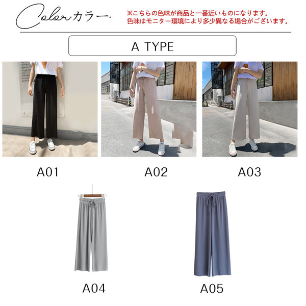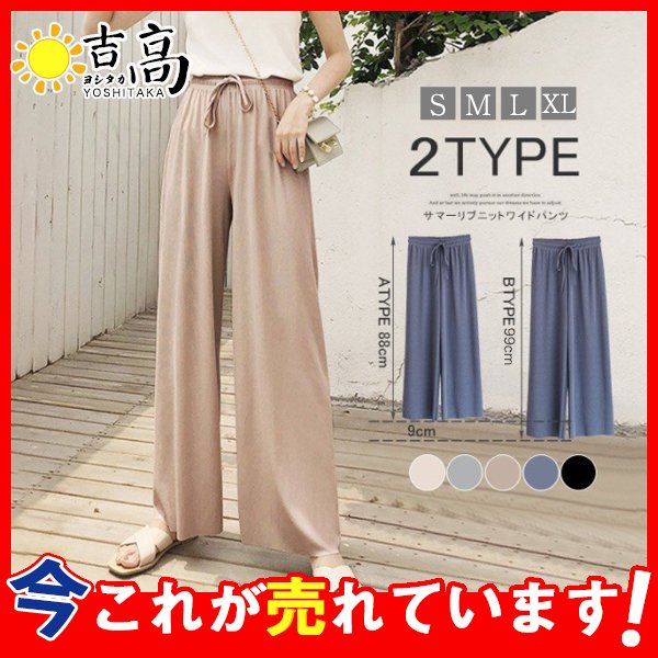 ワイドパンツ リブ レディース サマー 秋新作 ズボン 紐付き リブニット ストレッチ ボトムス ルームウエア ゆったり イージーパンツ おしゃれ 無地