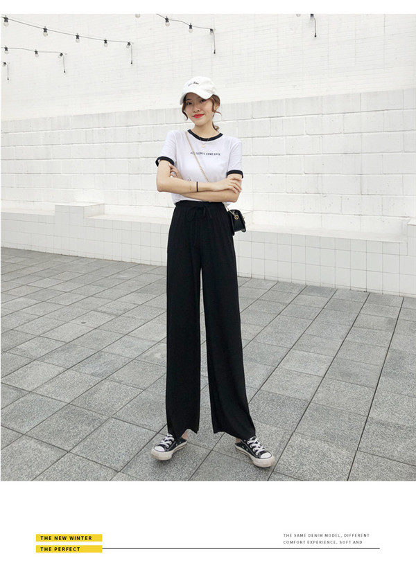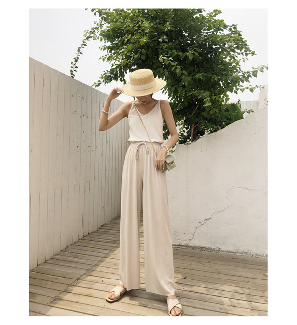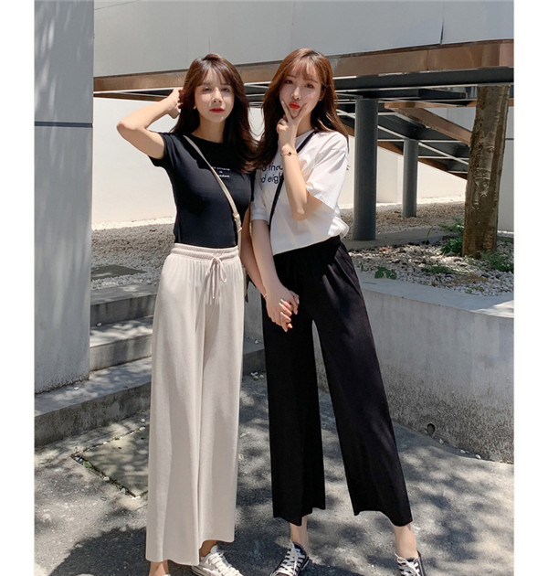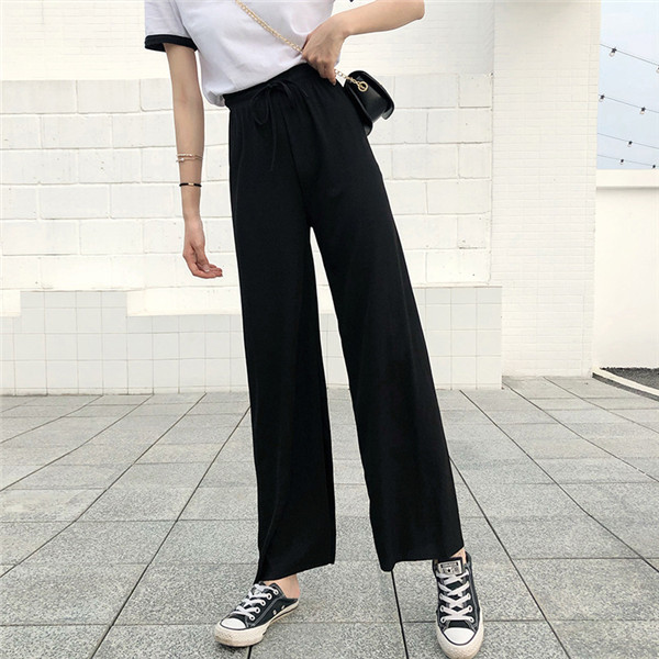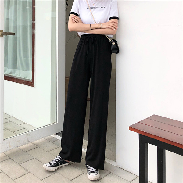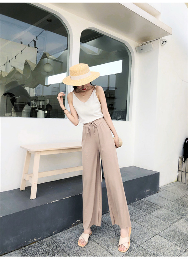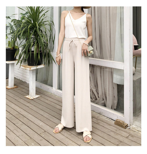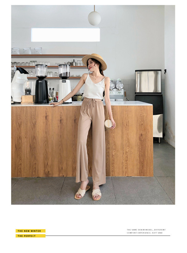 ワイドパンツ リブ レディース サマー 秋新作 ズボン 紐付き リブニット ストレッチ ボトムス ルームウエア ゆったり イージーパンツ おしゃれ 無地