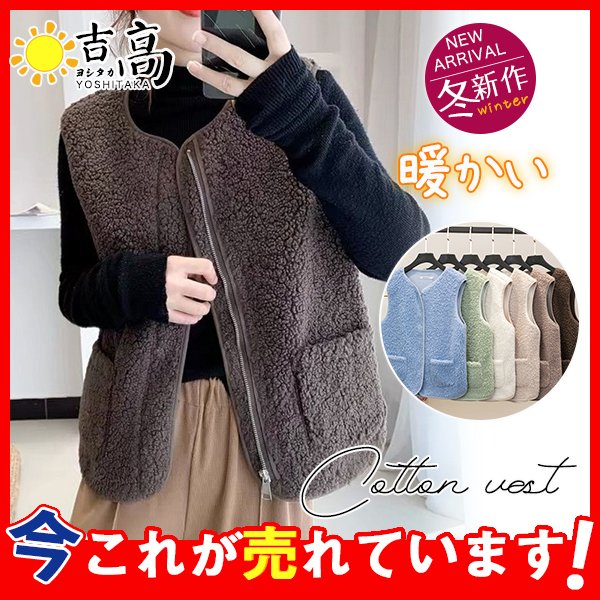 フリースベスト レディース ボアベスト モコモコ ジレ 厚手 前開き ジップアップ アウター ノースリーブ 冬物 防寒 カジュアル 可愛い 寒さ対策