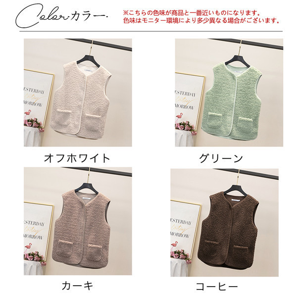 商品詳細:カラー:/オフホワイト/グリーン/カーキ/コーヒーサイズ:/S/M/L/XL■商品説明◎肌触りが柔らかく厚みのあるフリースを起毛させて、ふっくらモコモコとしたボアに仕上げました。◎これ1枚羽織るだけで、ふんわりとした可愛らしい印象をプラスしてくれます。◎保温性に優れているので寒い季節に大活躍してくれます。■製品仕様素材:ポリエステル、その他■キーワードトップス ベスト アウター 上着 羽織 羽織り フリースベスト 羽織もの コート ショートベスト トップス ショート丈 レディース ファー ボア ノースリーブ 折り襟 無地 大きいサイズ 大きい 大きめサイズ 大きめ ビッグシルエット オーバーサイズ ゆったり 前開き 防寒 暖かい あたたかい ナチュラル シンプル カジュアル 可愛い かわいい おしゃれ ファスナー 20代 30代 40代 50代