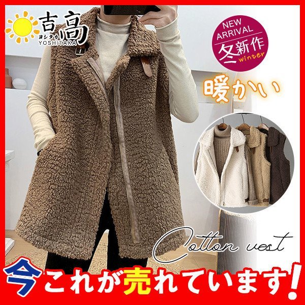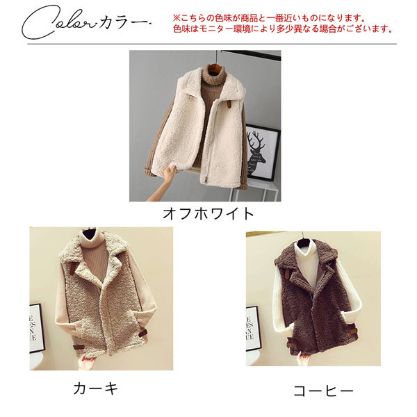 ファーベスト レディース ボアベスト モコモコ ジレ 厚手 ジップアップ アウター ノースリーブ 冬物 防寒 カジュアル 可愛い オシャレ 寒さ対策