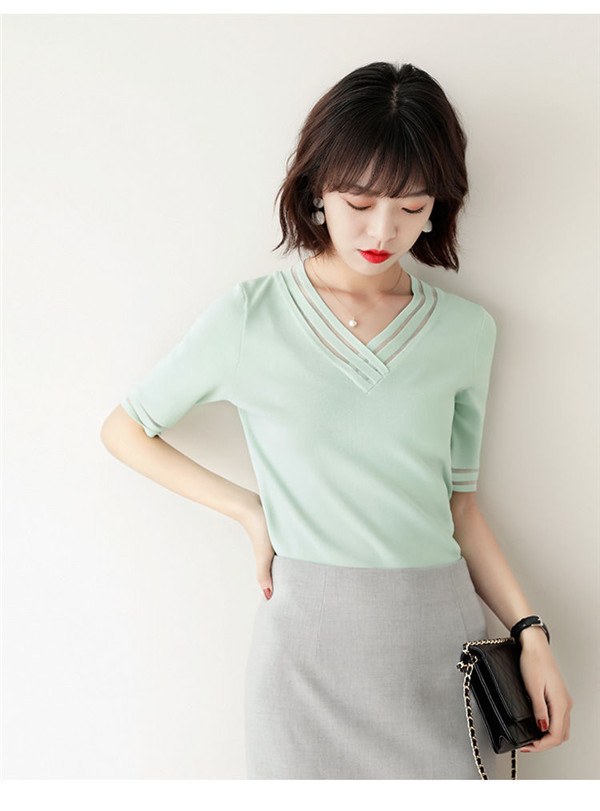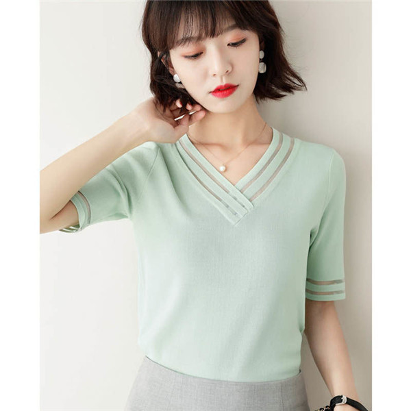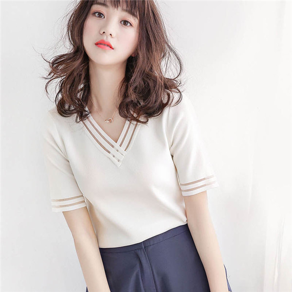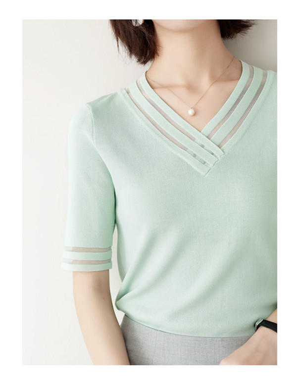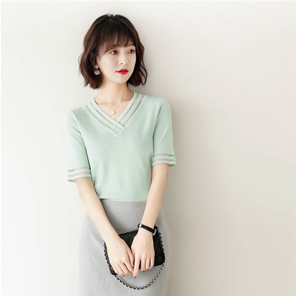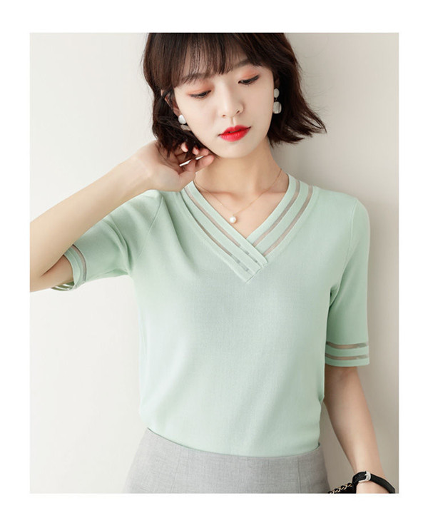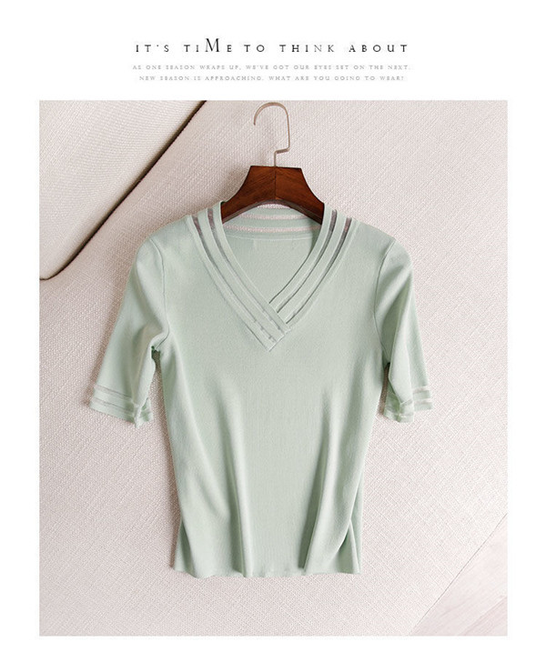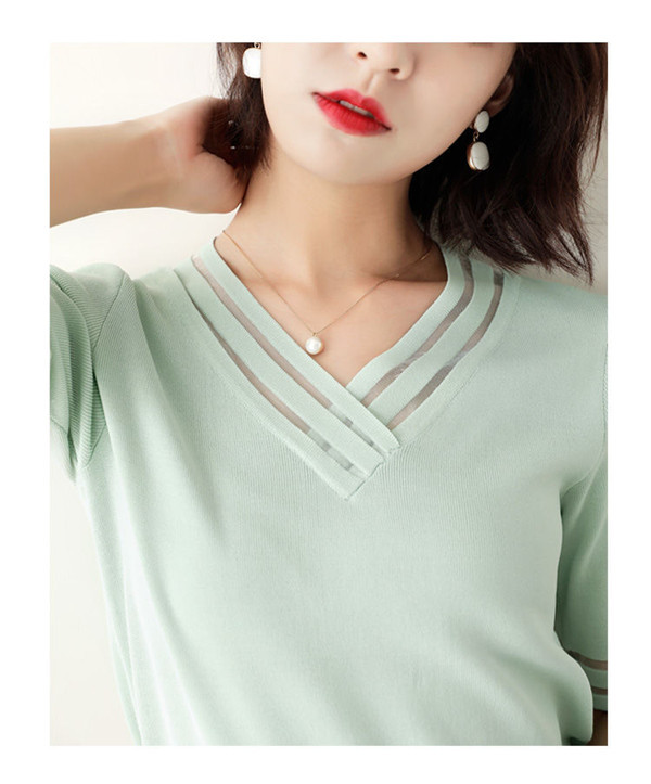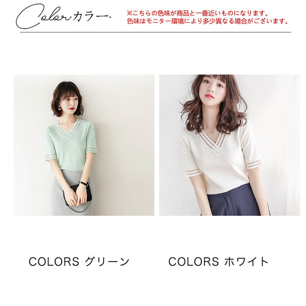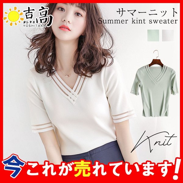 サマーニット レディース Vネック ゆったり 透け感 トップス 半袖 ショート 無地 きれいめ 春夏 トップス 可愛い カジュアル 大きいサイズ
