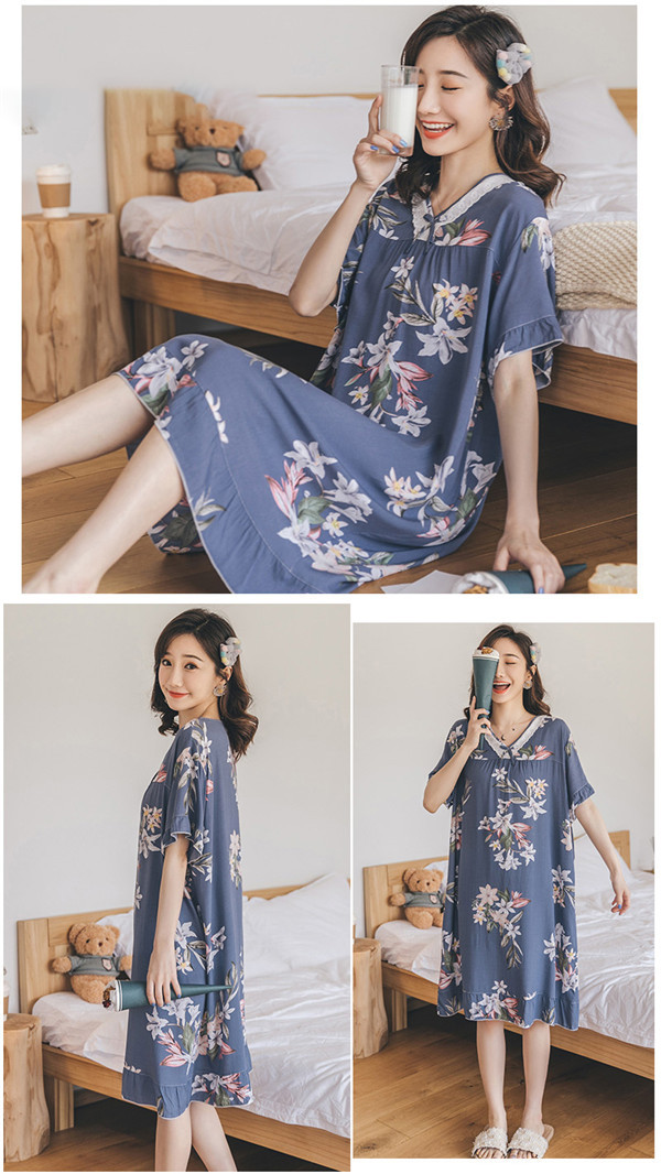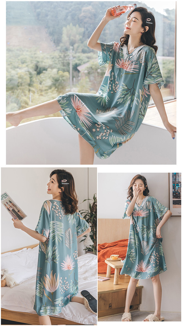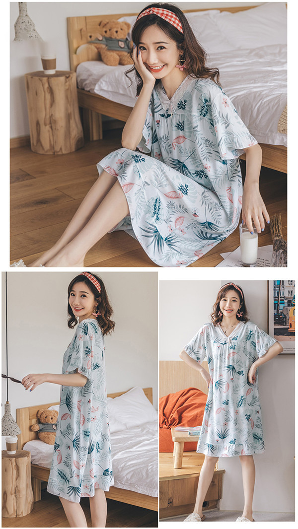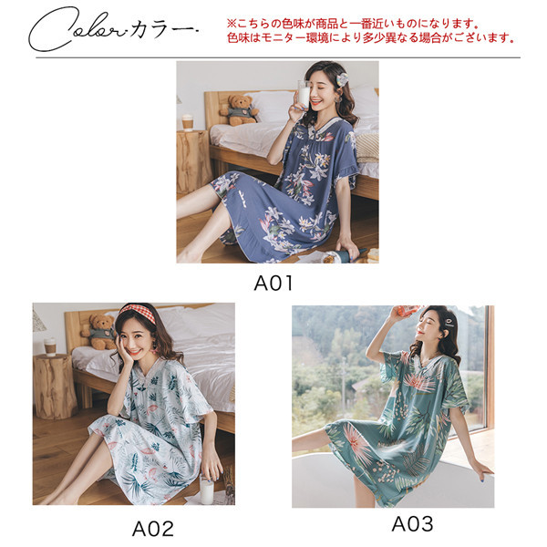 送料無料 ルームウェア レディース パジャマ ワンピース 花柄 レース ルームワンピース 体型カバー 部屋着 薄手 ゆったり 大きいサイズ 寝巻き