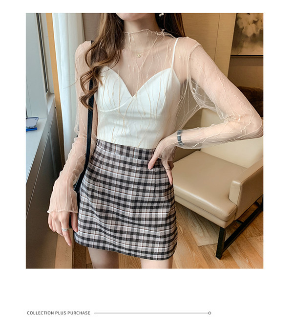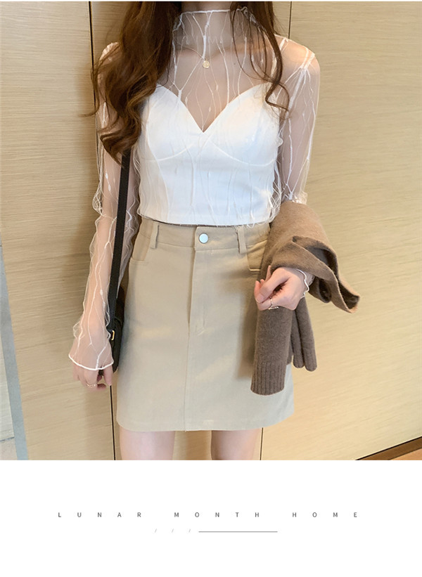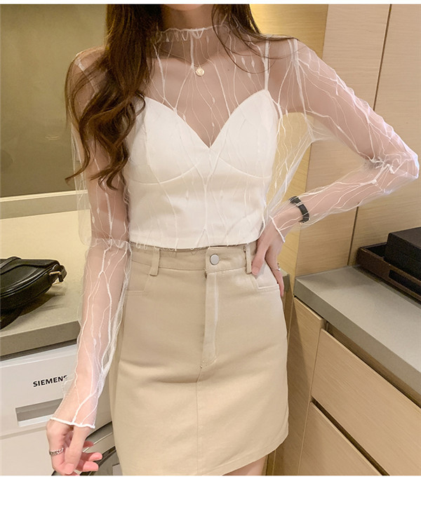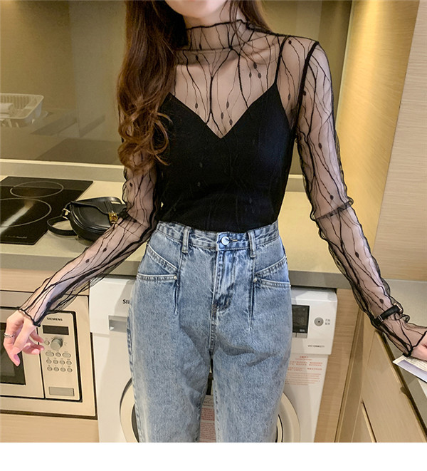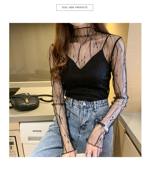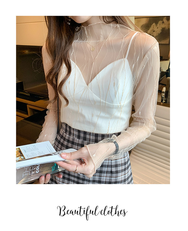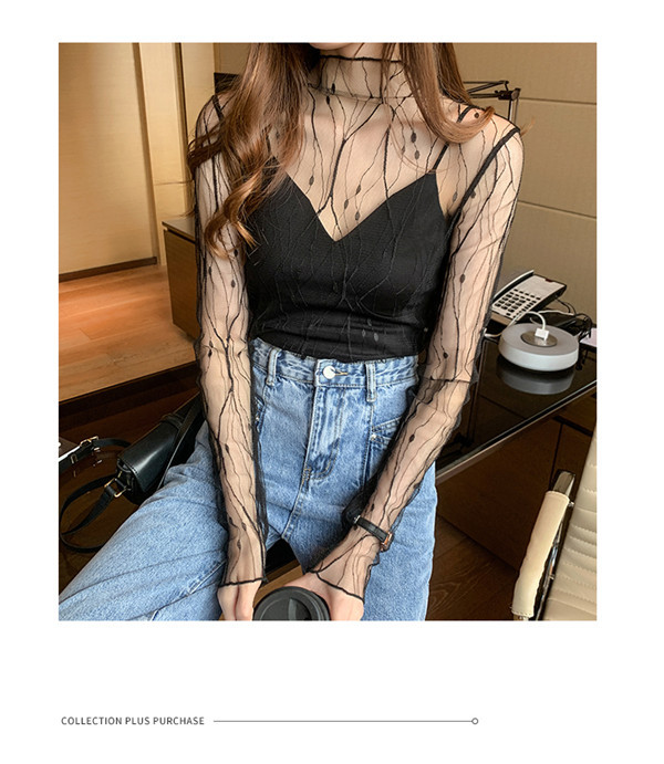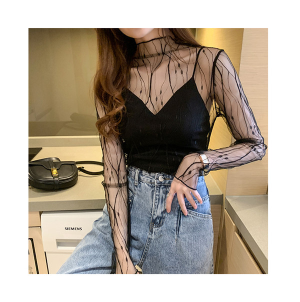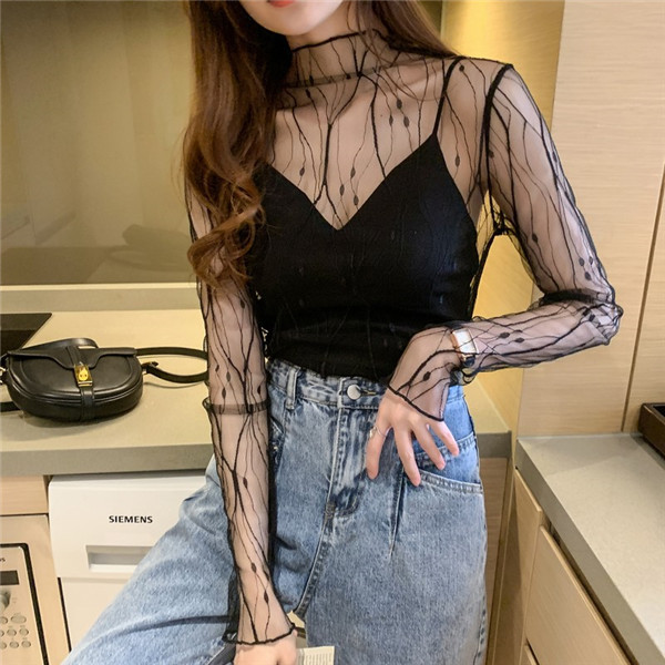 トップス レース レディース 網 ブラウス メッシュ 長袖 インナー 体型カバー フォーマル 着痩せ シンプル 無地 肌魅せ ベーシック 夜系