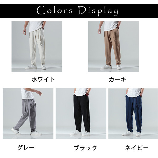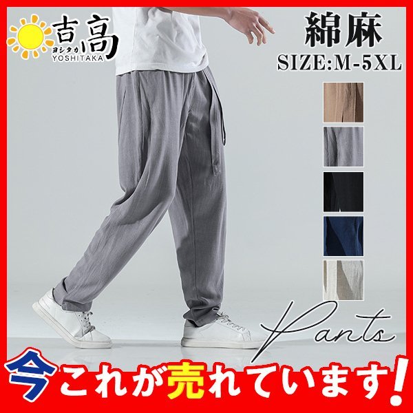 サルエルパンツ メンズ 麻ズボン リネンパンツ 涼しい ゆったり 夏物 ボトムズ 綿麻 薄手 大きいサイズ 楽チン 無地 カジュアル ルームウェア
