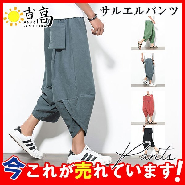 エスニック ワイドパンツ サルエルパンツ メンズ アラジンパンツ ウェストゴム 夏 ゆったり アンクルパンツ クロップドパンツ 大きいサイズ