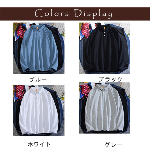 ポロシャツ メンズ トップス 長袖 シャツ 大きいサイズ 柔らかい 無地 春秋 カジュアル ゆったり かっこいい シンプル 体型カバー 普段着 通学