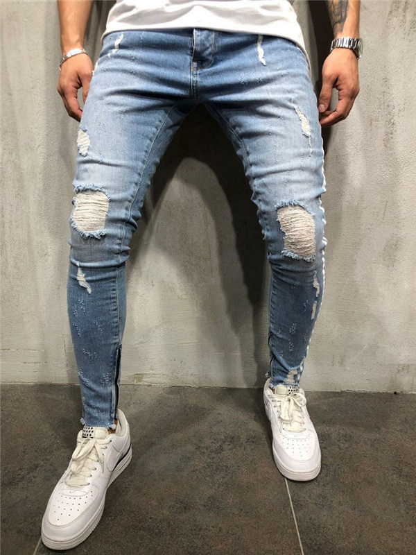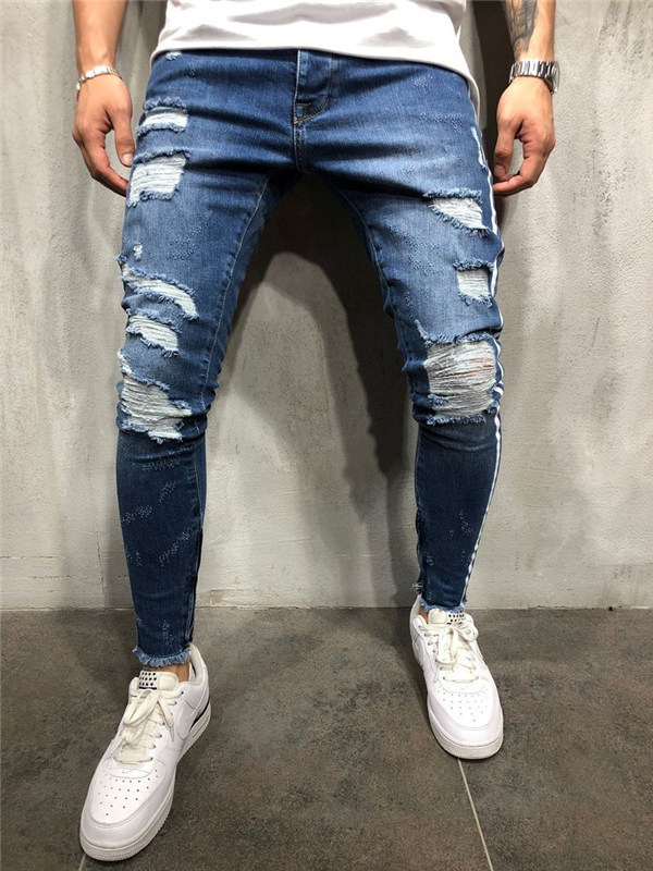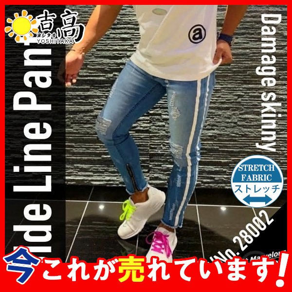 デニムパンツ メンズ スキニーデニム 細身 サイドライン ダメージ加工 スリム タイト ジーンズ ジーパン ストレッチ 伸縮 アンクルパンツ ボトムス
