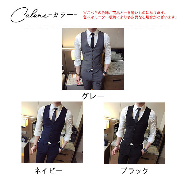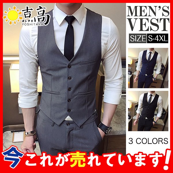 商品詳細:カラー:/グレー/ネイビー/ブラックサイズ:/S/M/L/XL/2XL/3XL/4XL-------------■商品説明スーツの必須アイテムで落ち着いた印象を与えビジネスに差を付けます。ビジネス着としてはもちろん結婚式、パーティー、2次会等活用できる万能ベストチョッキです。フィット感のある着心地ですが窮屈感はなく、コンパクト&スリムに着こなしている印象が作れます。-------------■素材ポリエステル、その他-------------■ご注意●サイズ表記は目安です。誤差はご了承ください。●生産の関係により写真と色、柄が若干異なる場合があります。-------------■キーワードベスト メンズ ジレベスト 紳士服 スーツベスト フォーマルベスト チョッキベスト ビジネス カジュアル 前開き 通勤 紳士的 結婚式 宴会 発表会 披露宴 演出 トップス