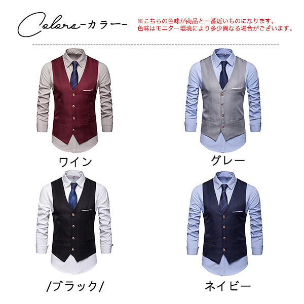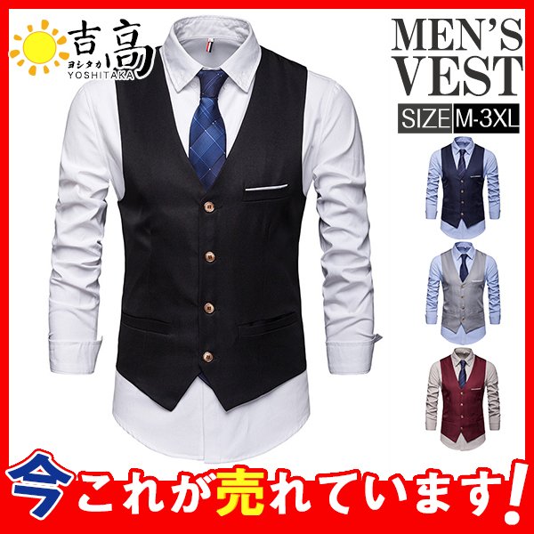商品詳細:カラー:/ワイン/グレー/ブラック/ネイビーサイズ:/M/L/XL/2XL/3XL-------------■商品説明スーツの必須アイテムで落ち着いた印象を与えビジネスに差を付けます。ビジネス着としてはもちろん結婚式、パーティー、2次会等活用できる万能ベストチョッキです。フィット感のある着心地ですが窮屈感はなく、コンパクト&スリムに着こなしている印象が作れます。-------------■素材ポリエステル、その他-------------■ご注意●サイズ表記は目安です。誤差はご了承ください。●生産の関係により写真と色、柄が若干異なる場合があります。-------------■キーワードベスト メンズ ジレベスト 紳士服 スーツベスト フォーマルベスト チョッキベスト ビジネス カジュアル 前開き 通勤 紳士的 結婚式 宴会 発表会 披露宴 演出 トップス