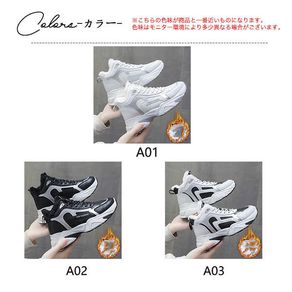 商品詳細:カラー:/A01/A02/A03サイズ:/22.5/23/23.5/24/24.5/25-------------■商品説明毎年秋冬シーズンのワードローブに欠かせないマストアイテム!人気の裏ボア・スニーカーが新しくなって再登場。足全体がボアに包まれてふかふかな履き心地と保温性あります。歩きやすいのが嬉しいポイントで、お出掛けが楽しくなること間違いなし。-------------■製品仕様素 材:PU、その他ヒール:約5.5cm-------------■ご注意●箱無し簡易包装での配送になりますのでご了承くださいませ。●生産の関係により写真と色、柄が若干異なる場合があります。-------------■キーワードスニーカー 裏起毛 防寒 ハイカット ローファー 痛くない スリッポン ぺたんこ 疲れない ブーツ ゴルフ 婦人靴 女性 レディース アウトドア 厚底 ウォーキング 歩きやすい 走れる 履きやすい