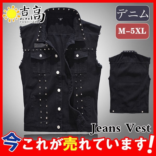 デニムベスト メンズ デニム ジージャン Gジャン リベット ダメージ加工 チョッキ ノースリーブ カジュアル アウター バイク用 B系 秋新作