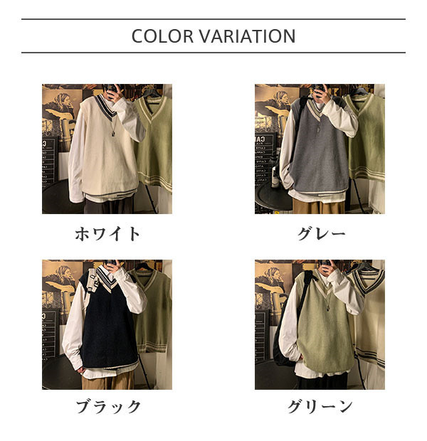 商品詳細:カラー:/ホワイト/グレー/ブラック/グリーンサイズ:/M/L/XL/2XL【商品説明】メンズ用のプルオーバーニットベストが新入荷。さり気なくシャープなイメージを演出するちょうどいいサイズ感。柔らかくてきめ細かい生地を使い、決してチクチクせず着心地的にも申し分無し。シャツと重ね着するだけでコーデ完成、幅広い世代に似合うマストアイテム。【素材】ポリエステル、その他【ご注意】※サイズ表記は目安です。誤差はご了承ください。※生産の関係により写真と色、柄が若干異なる場合があります。※商品は縫製上の細かいほつれ、汚れ、素材特有の臭いや接着剤等の臭いが残っている場合がございますので、気になるお客様はご購入をお控え下さい。【キーワード】高品質加工 ビジネスベスト メンズ カジュアル 無地 トップス 通学 通勤 大きいサイズ ストレッチ Vネックベスト 新作秋 秋服 秋物 冬 冬服 冬物 春