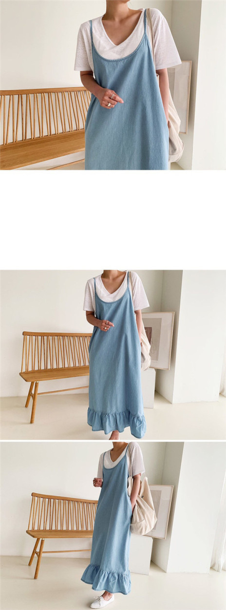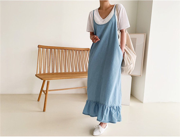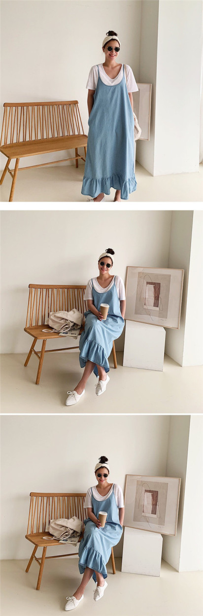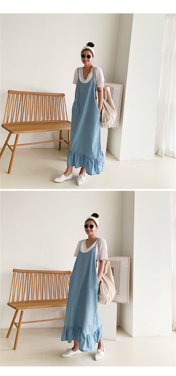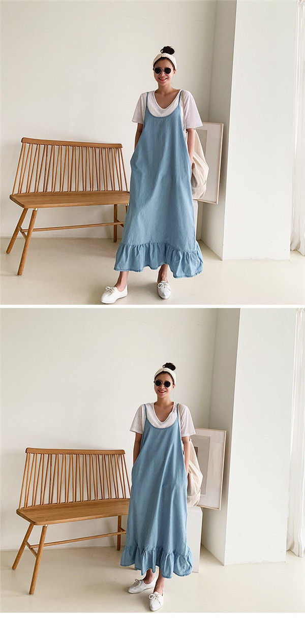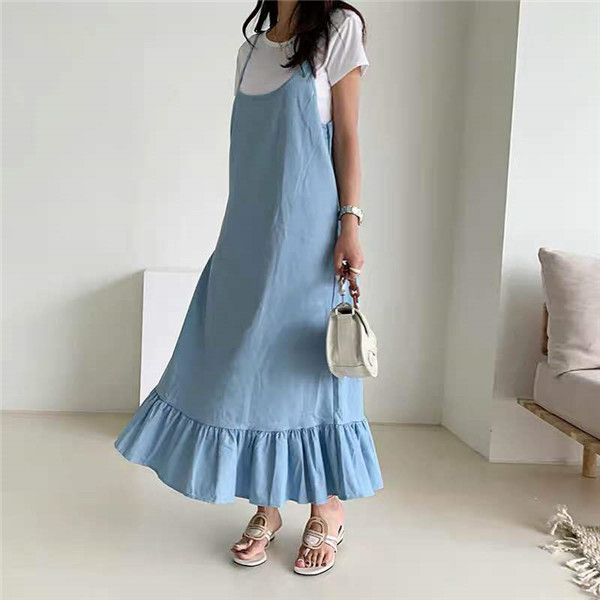 サロペット レディース デニムワンピース デニム 裾フリル スカート ワンピース ジーンズ サロペットスカート ジャンパースカート 大きいサイズ