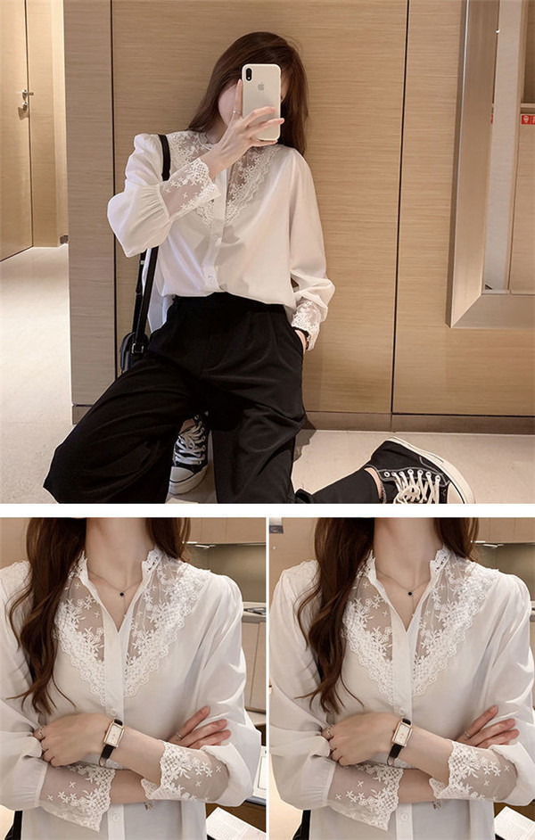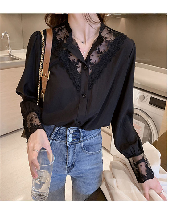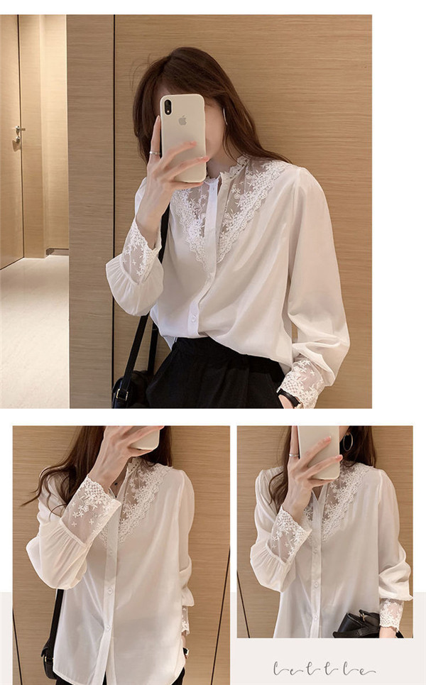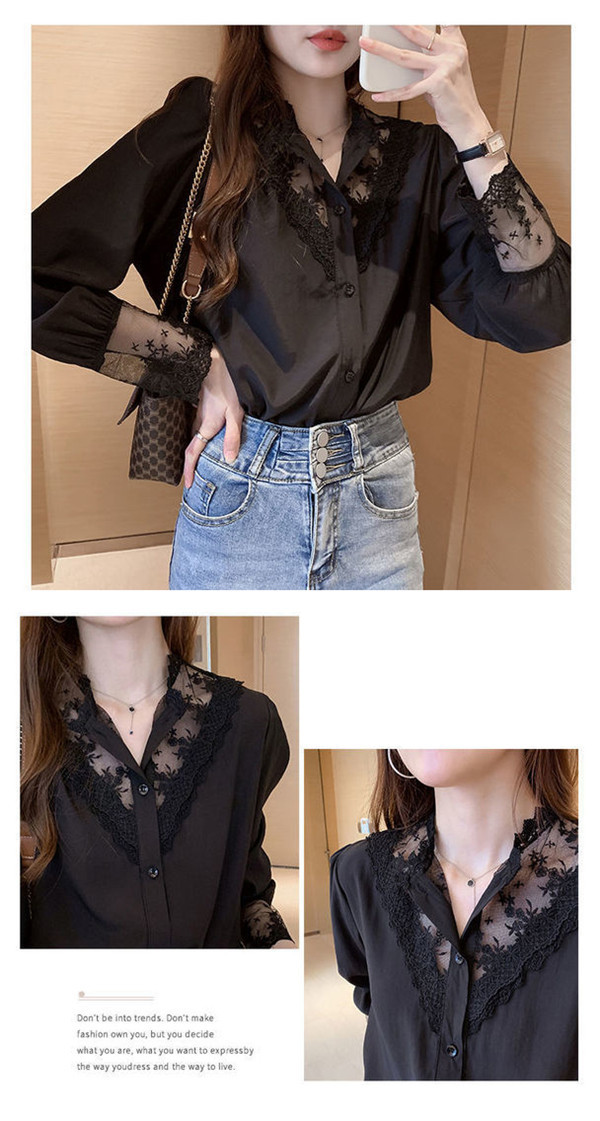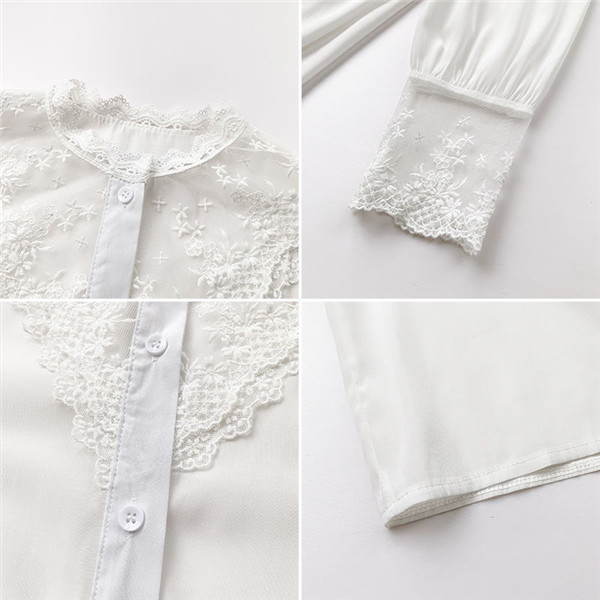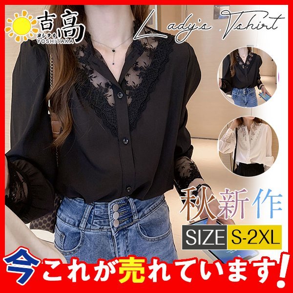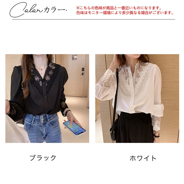 シャツ ブラウス レディース 刺繍 レースブラウス 花柄 Vネック シフォン トップス 長袖シャツ 黒 白 おしゃれ お洒落 可愛い 人気 体型カバー