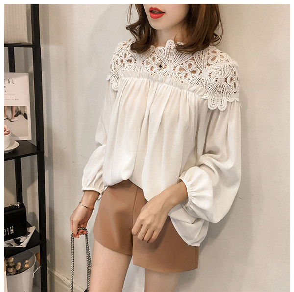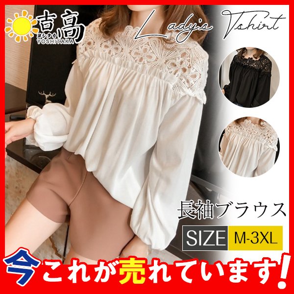 ブラウス レディース トップス 長袖ブラウス レースシフォンブラウス 人気 大きいサイズ 着痩せ ファッション ビジネス 通勤 ドッキング 刺繍