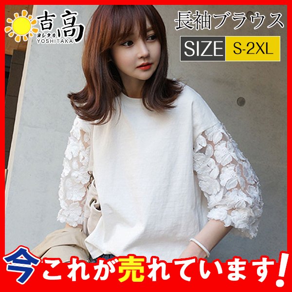 ブラウス tシャツ レディース 長袖 トップス 刺繍 レース 透け感 花柄 きれいめ ゆったり おしゃれ 着痩せ カジュアル 無地 普段着 可愛い