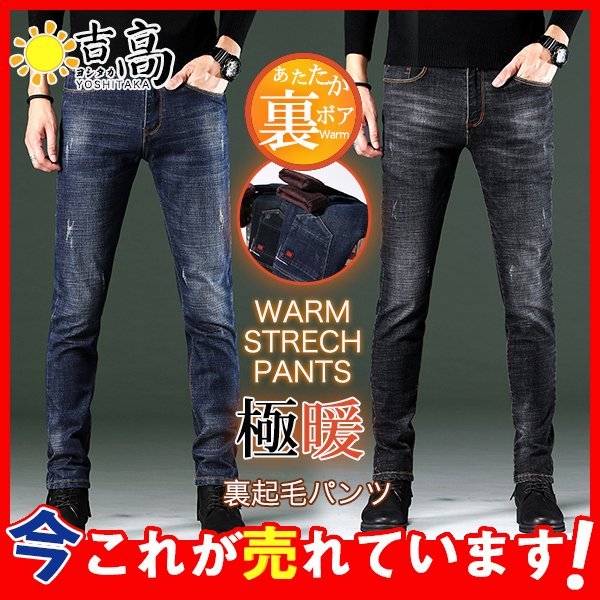 デニムパンツ メンズ スキニーパンツ 細身 スリム ボア 裏起毛 極暖 ジーンズ ストレートパンツ ストレッチ ボトムス 防寒 防風 ジーパン 伸縮