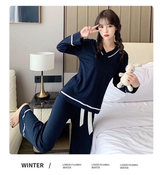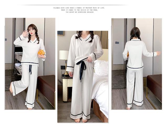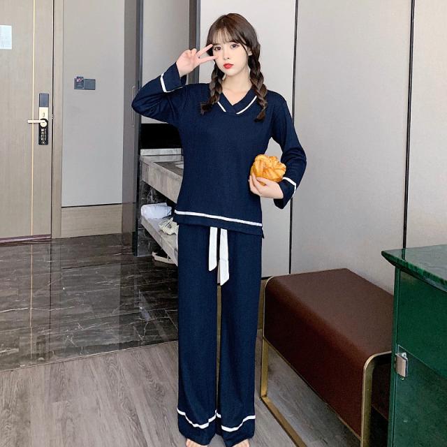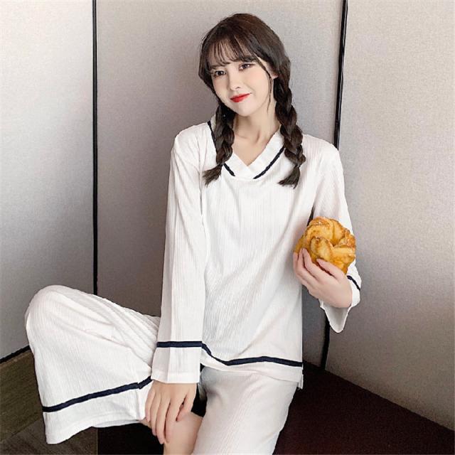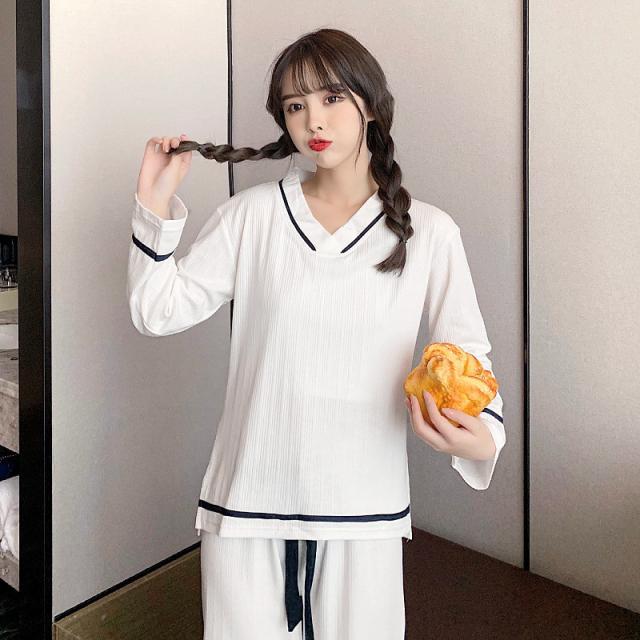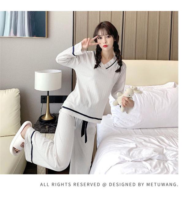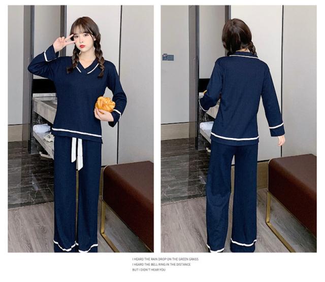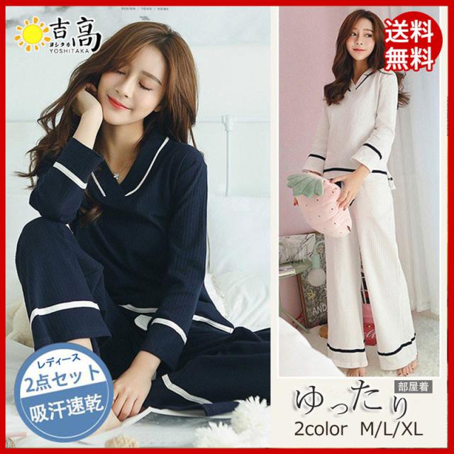 パジャマ ルームウェア レディース ルームウェア 上下セット 長袖 長ズボン 2点セット 綿 Vネック リボン 無地 韓国風 寝巻き オシャレ 可愛い