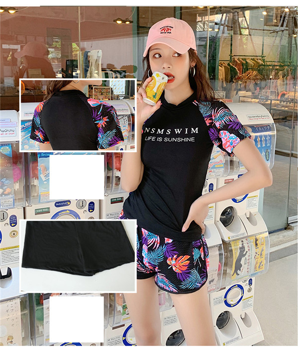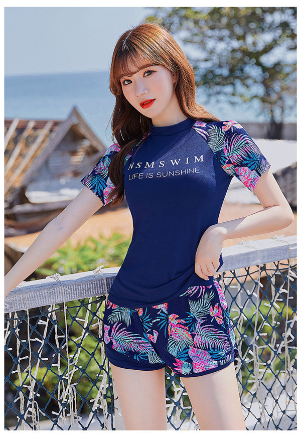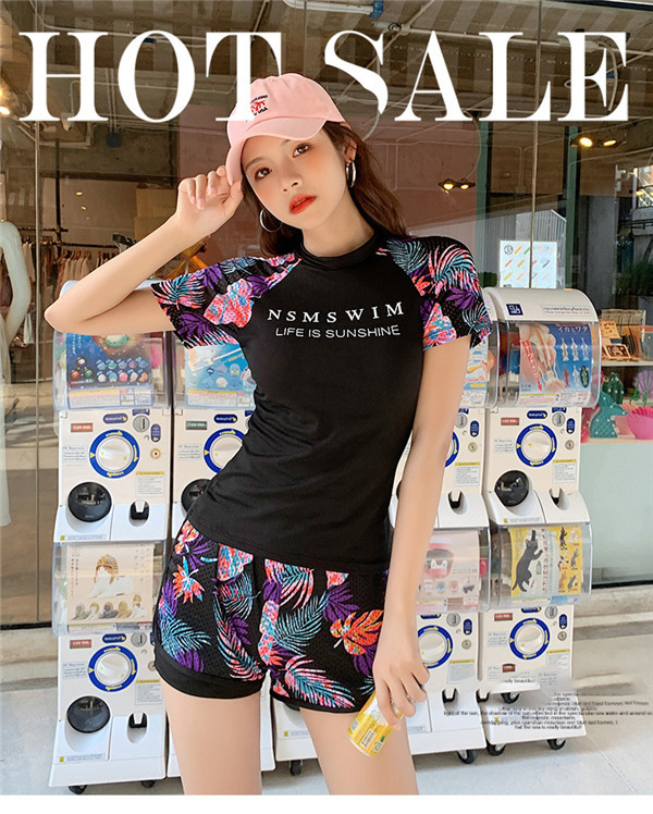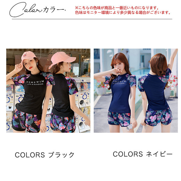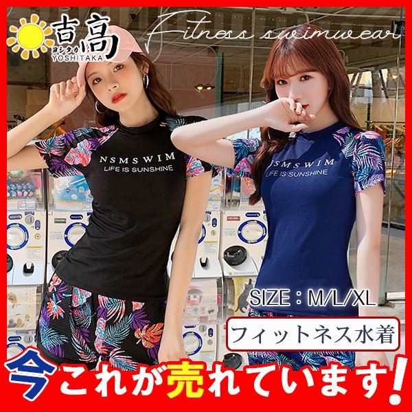 フィットネス 水着 レディース 3点セット 体型カバー 半袖 めくれ防止 日焼け対策 大きいサイズ 可愛い スイムウェア 体型カバー UVカット